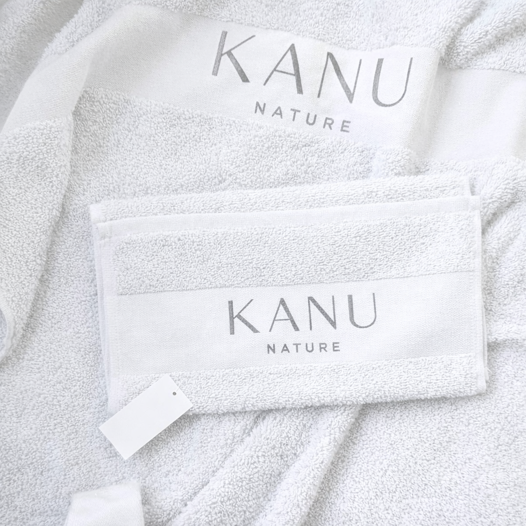 Prosop ALB 100% bumbac, cu sigla KANU NATURE brodata.